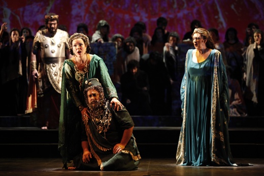 Lauren Flanigan (Esther) and James Maddalena (Mordecai) are both stalwart interpreters of this kind of repertoire, blessed and cursed to be in constant demand for roles in American contemporary operas because of their rare technical prowess and musical versatility. Ms. Flanigan sang the premiere production here in 1993. Reprising the role after sixteen years, her voice astonishingly retains a girlish quality perfect for the teen queen, and she sang with ease and attractively colored sound through a maze of technical feats. Maddalena was sympathetic in the “Amonasro” role of Esther’s uncle Mordecai, singing some of the less jerky vocal writing found in this opera with warm, shapely lyricism. Xerxes was well suited to the darker baritone of Stephen Kechulius, who sang the part with gravitas.