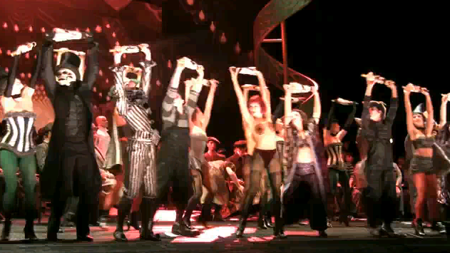The previous Otto Schenk production (of which I was quite fond) had a very strong Olympia act but Sher’s version matches it. The atmosphere is often rather louche – scantily clad showgirls in garters and pasties show up in every act except Crespel’s bourgeois Munich home. There is a use of doppelgangers – sometimes there is a stageful of ballerina Olympias all dressed alike and Hoffmann also has a stageful of top-hatted Magritte-like doubles as well. Sher has some lapses in his direction as well. Notably, in the Olympia scene the doll sometimes moves like an automaton and at other times, mysteriously moves like a real girl. Are we to see Olympia as Hoffmann sees her through his rose colored glasses? Then Hoffmann needs to be placed in some kind of relation to her so that we are looking at him seeing Olympia. Also perhaps the lighting needs to be changed to a pinkish glow to indicate we are seeing her through the poet’s eyes. Sher’s use of the chorus (aided by some dancers choreographed by Dou-Dou Huang) is full of variety and life, enlivening each scene.