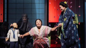 Two years after the self-professed Puccini tenor Jonathan Tetelman made his house debut in Giuseppe Verdi’s La traviata, the Chilean-American tenor gave an absorbing performance as the naïve soldier Don José in his very Italianate role debut, particularly in the “Flower Song.” With a ringing register and marked dynamics in his voice, he detailed Don José’s act-by-act gradual decline in fate sonically and physically. It was truly fascinating to see how far his acting skills had progressed since Alfredo Germont just two short years ago!