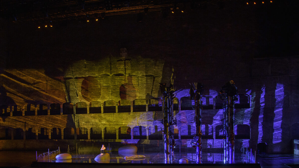 A gorgeous flute solo, performed by the Vienna Philharmonic’s Karl-Heinz Schütz standing in one of the Felsenreitschule’s stone archways above the stage, offers the narrator only temporary comfort. The other extensive woodwind solos sometimes felt disjointed, only really coalescing in the instrumental funeral march. This fragmentation is intentional in the score, as the narrator searches for the meaning behind her loss. The piece in many ways is about accepting fate and mortality. “Memories of better times. Freedom. Nature,” Sellars notes in his description. Perhaps this means in his staging that the Woman transcends the political and embraces the sublime? Nature’s eternity triumphs over temporary humanity. At the end of Mahler’s “Farewell,” the protagonist finally leaves the body behind and wanders out of the camp to the strains of the unresolvable C-Major-6 chord.
