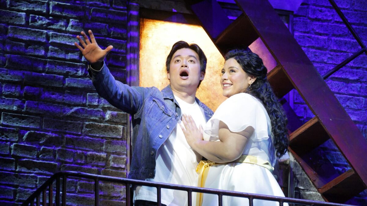 From the beginning, LAO planned to present West Side Story with a mix of opera singers and musical theater performers. For this production, the two main lovers were sung by opera stars, while the rest were filled with musical theater performers, many of whom had appeared in previous West Side Story shows (including earlier versions of this one), likely because of the extensive choreography. Everyone on stage was clearly mic’d. While that made the spoken words audible, on Saturday, there were a few moments in Act I where the miking overwhelmed the balance with the orchestra.