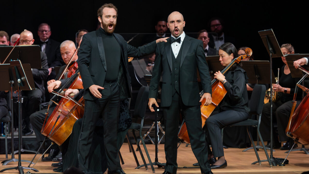 Baritone Theo Hoffman sang Oreste with gusto. Having sung the role in a run of Iphigénie at the Opéra-Comique in Paris earlier this fall, Hoffman clearly knew the part well, forgoing a printed score and leveraging precise French diction. Hoffman’s warm, rich baritone vividly conveyed the character’s tortured conscience. His expressive acting, beyond what is typical for opera in concert, complemented his vocal performance but occasionally veered over-the-top. Also singing off-book, Fran Daniel Laucerica lent his sweet-toned, smooth tenor to Pylade and conveyed a deep emotional connection to Oreste. Hoffman and Laucerica’s chemistry portrayed the characters’ relationship as a backslapping Platonic bromance.