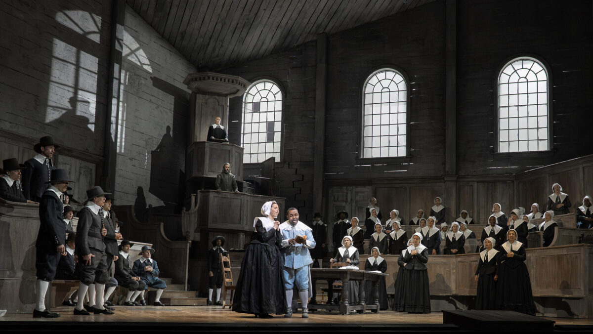 I recalled this experience watching bonneted Puritan maids scurry across the stage during the second performance of Bellini‘s I puritani at the Met last weekend. The story of the Puritans is “intrinsic to the American sense of history in a way that we’ve erased in the UK,” said director and designer Charles Edwards in an interview with Parterre Box ahead of the premiere. “So, it’s actually almost more your story than ours.” A Puritani that is more New England than England, more severe than Romantic? I’m interested.