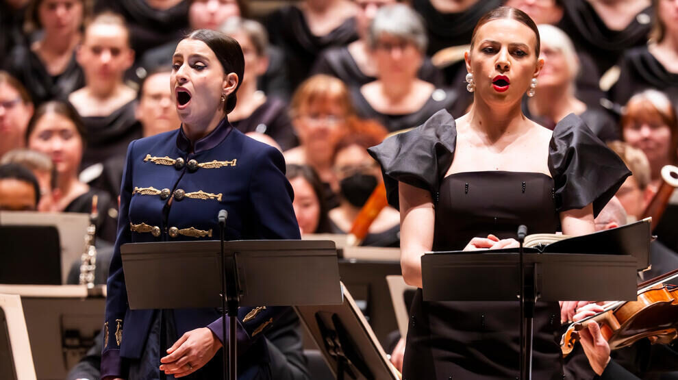 Uzun, an arresting Turkish-German mezzo, began weakly with a hesitant “Liber scriptus” that lacked legato, but soon she was pouring out richly honed sound, secure from top to bottom. A graduate of Indiana University’s Jacobs School of Music, the rising mezzo has been embracing an eclectic repertoire that has included Fricka and Waltraute in the Dallas Symphony Orchestra’s 2024 complete Ring, as well as a recent tour as Tamiri in Vivaldi’s Farnace and Rubina in Boito’s Nerone at the Teatro Lirico di Cagliari. In April, she debuts as Falstaff’s Mistress Quickly at Warsaw’s Teatr Wiekli.