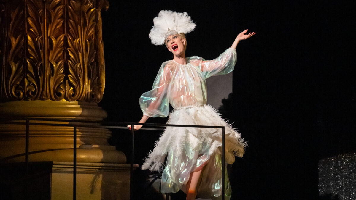 But as a performer, Bond doesn’t settle easily into this work. The singing is limited to a ditty which is delivered with style, but doesn’t offer much beyond that. There is virtually no spoken dialogue until a long monologue where Bond, completely breaking the theatrical frame, excoriates all things Trump and Trump-identified. This brought down the house (no one would mistake an Opera Philadelphia performance for a Turning Point USA rally), but for me, it’s an unwelcome, grandstanding distraction from the work itself.