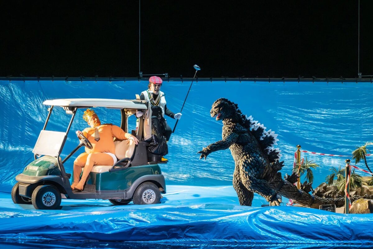 Seeing the words “Trump” and “Opera” in the same sentence is unfortunately becoming a more common occurrence. After last month’s news that the Washington National Opera would part ways with the Kennedy Center, the opera world was bombarded with additional Trump-related headlines following the premiere of Olga Neuwirth’s Monster’s Paradise in Hamburg. Viral headlines, such as that reading “Gorgonzilla beißt dem orangen König den Kopf ab – die Welt geht trotzdem” (“Gorgonzilla bites off the head of the orange king – the world still goes on”), appeared on newsstands and U-Bahn screens across Germany since the production opened. While Trump remains in the Oval Office with his head intact, Neuwirth’s work encourages us to imagine an exaggerated reality: one where Trump’s regime is crushed by a knock-off Godzilla.