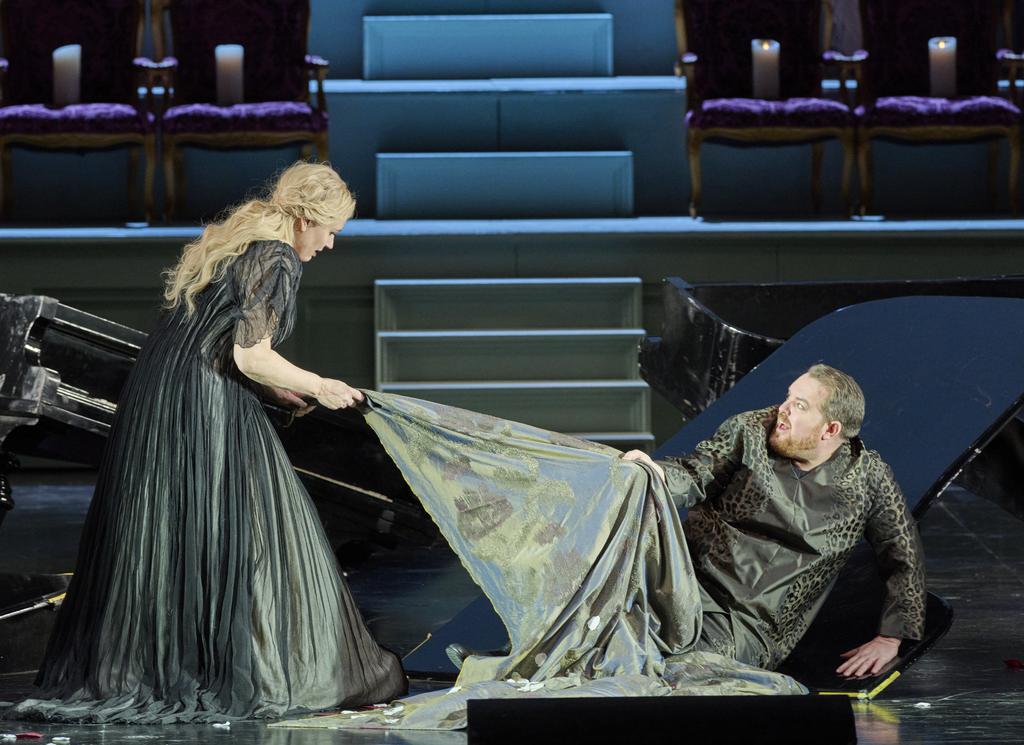 Impressions were more mixed on the ‘heroic’ couple. In my admittedly short time of opera-going, I’ve had the good fortune to hear Anja Kampe as Sieglinde sing the most effortless, radiant “O hehrstes Wunders” one can imagine. Since then, she’s graduated to Brünnhilde and the voice now unquestionably wears the Valkyrie’s battle scars. Her chest voice is powerful enough to make one tremble at the resounding darkness of “Totenreich,” but the top is beleaguered – and it doesn’t help that my ears still ring with the sheer vocal prowess and effortlessness exhibited by Lise Davidsen a year ago. To Kampe’s credit, though, she was nevertheless extremely touching in the final scene with Bacchus, perhaps because the staging finally allowed her to take Ariadne and her situation seriously and earnestly, resulting in some luminous-toned, sensitive and incredibly moving singing: an almost startling tipping over into the sublime.