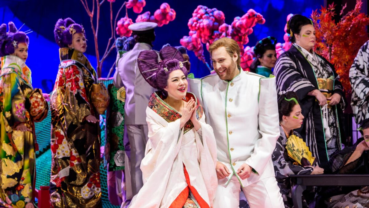 Then Johnson’s Pinkerton rushes to caress the cast-off geisha clothing while repeatedly singing, “Butterfly!” in his VR revelry. Meanwhile, Son marches across the front lip of the stage as a follow spot catches her glaring out at the audience as the orchestra blares out the final notes.